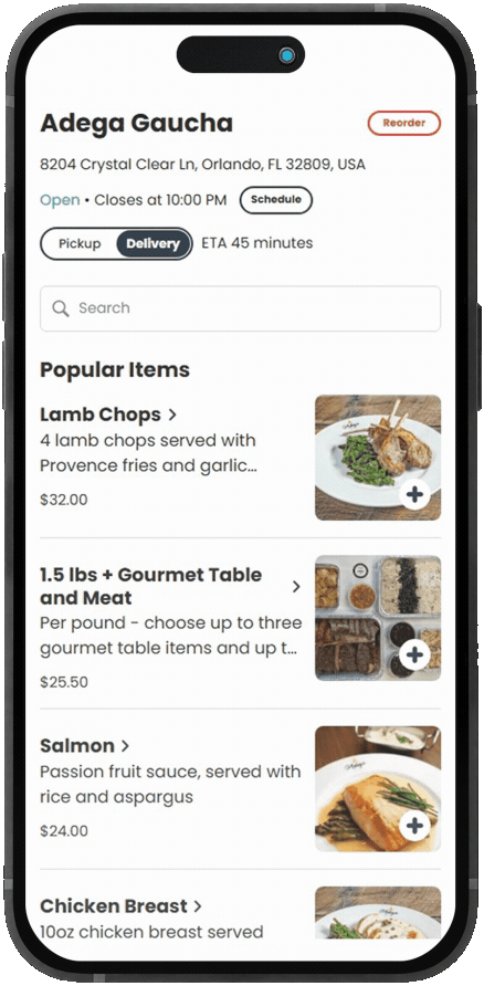 Enjoy the authentic flavors of Adega Gaucha from the comfort of your home. Whether you’re craving our perfectly grilled Brazilian churrasco or our fresh gourmet sides, we’ve got you covered. Place your order today and have a delicious Brazilian steakhouse meal delivered straight to your door without leaving your home!